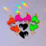 Love Buds Neon Orange Heart Leaf Vegan Leather Stud Earrings