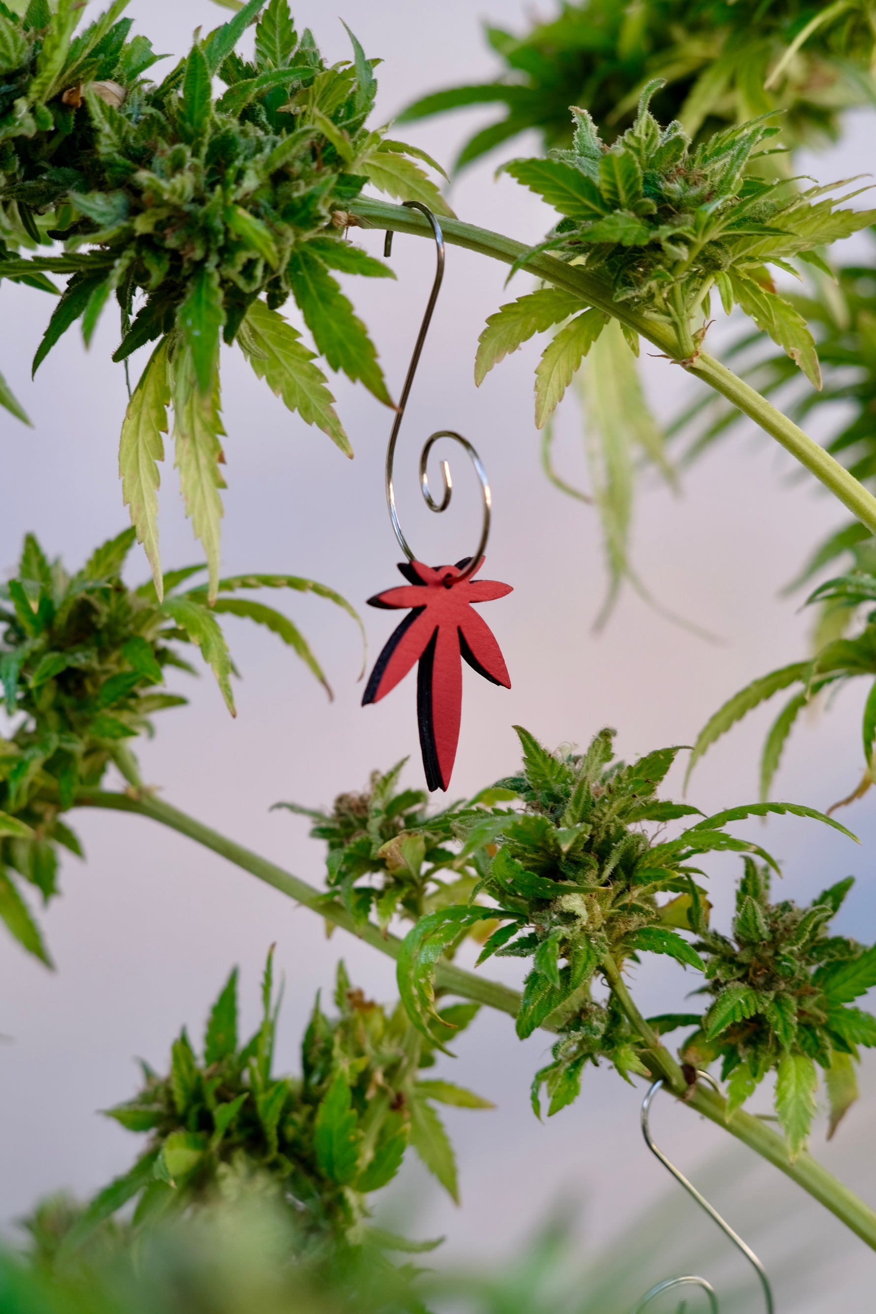Mini Leaf Vegan Leather Red Maroon Black Ornaments 3pk