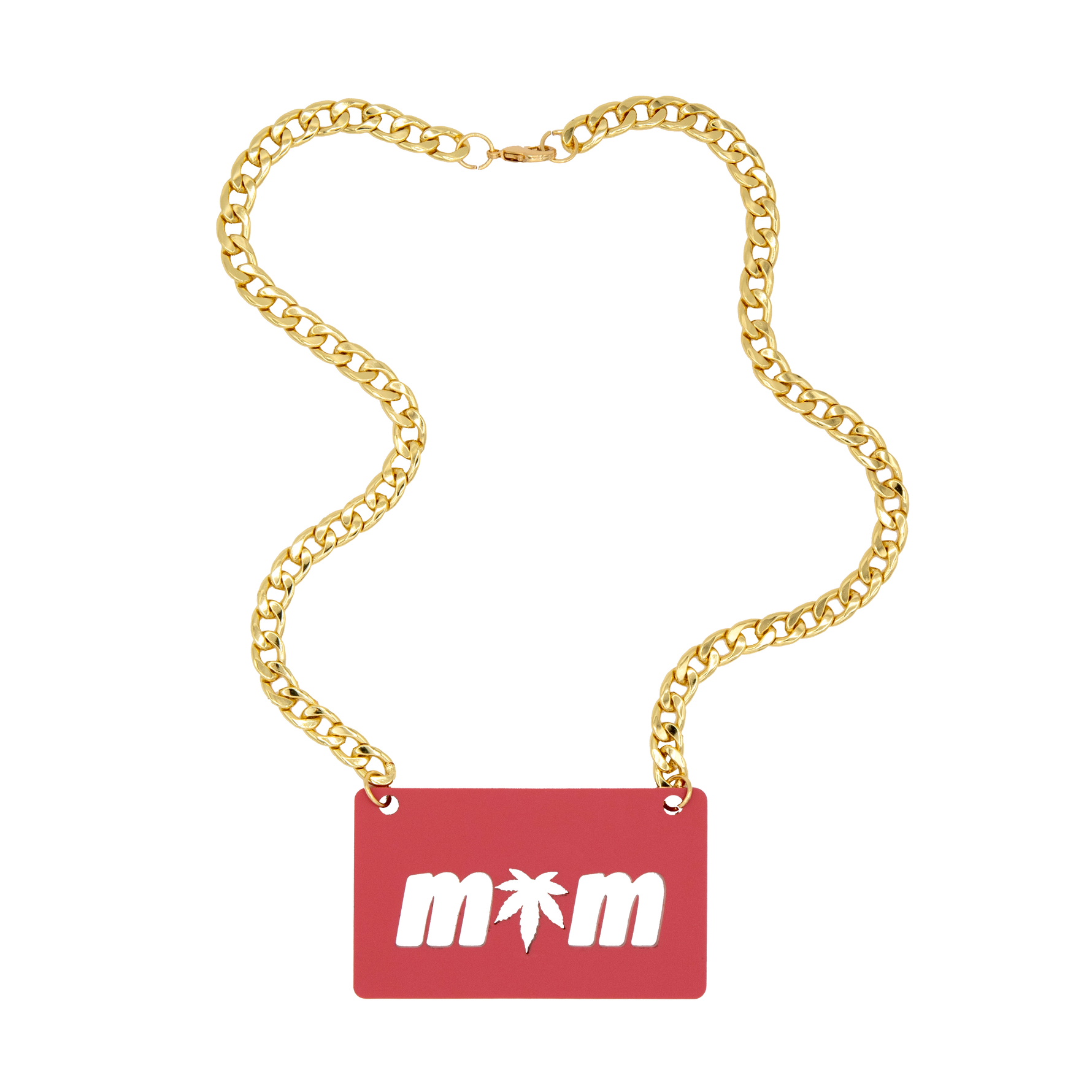 Pink Mini MOM Nameplate Necklace with 18" Gold Curb Chain