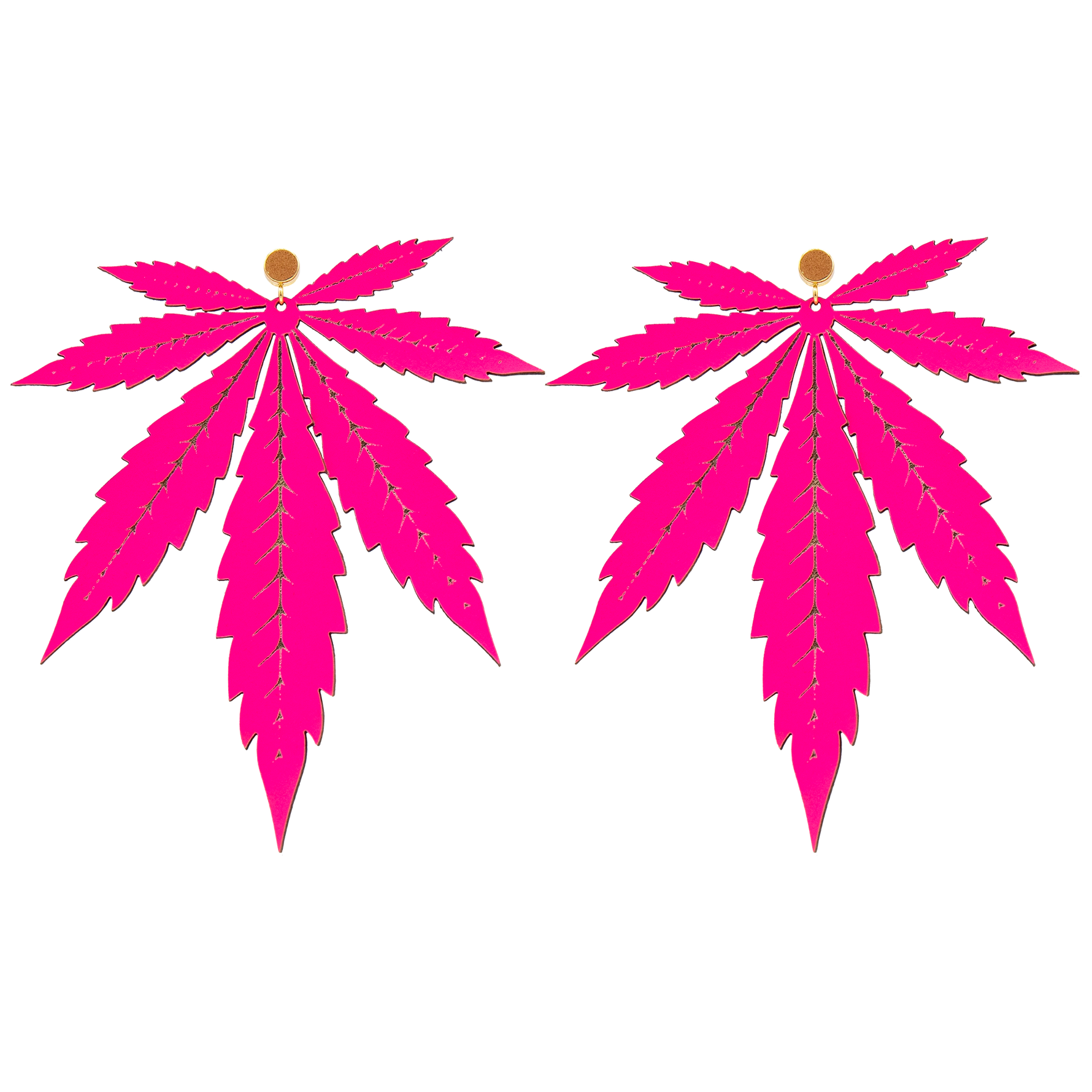 Hot Pink XL Leaf Italian Leather Stud Earrings